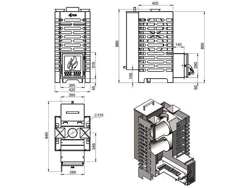 Диаметр дымохода: 115 мм