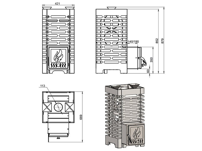 Стальной кожух-конвектор значительно ускоряет нагревание воздуха в парилке за счет образуемого им мощного воздушного потока.
