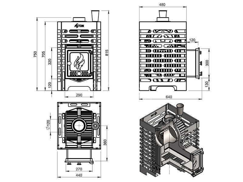 Диаметр дымохода: 120 мм