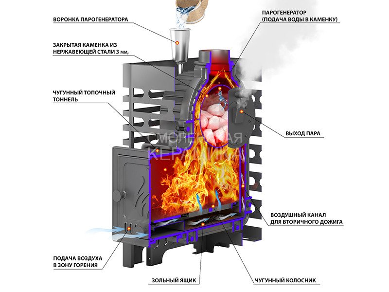 Толщина закрытой каменки: 3 мм