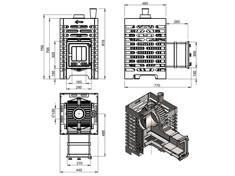 Диаметр дымохода: 120 мм