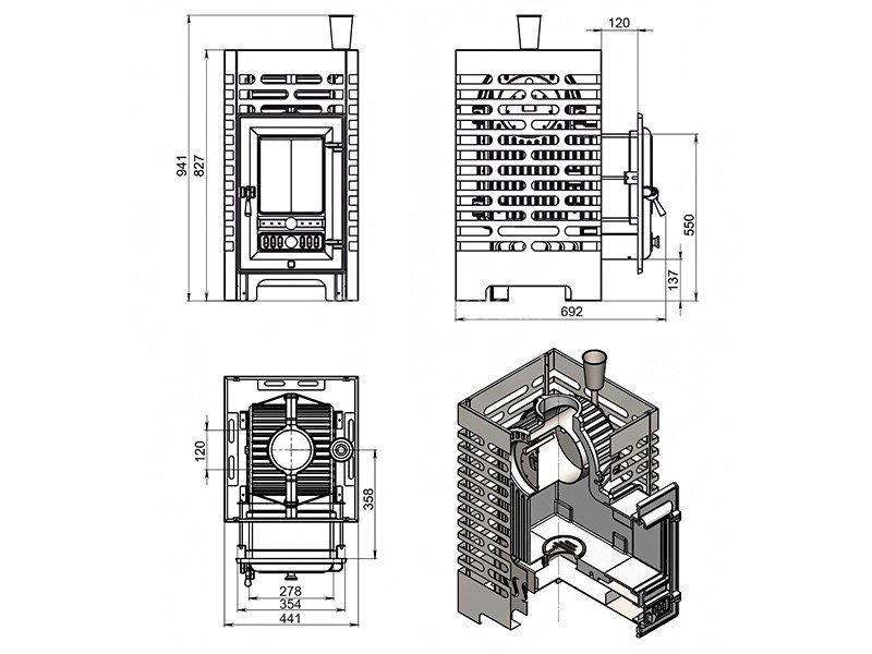 Материал закрытой каменки: Нержавеющая сталь AISI 430