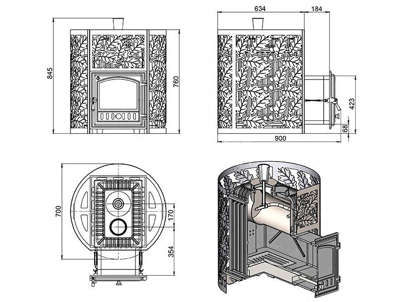 Материал закрытой каменки: Нержавеющая сталь (AISI 430)