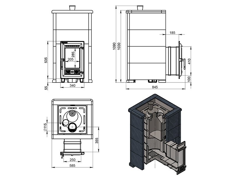 Диаметр дымохода: 115 мм