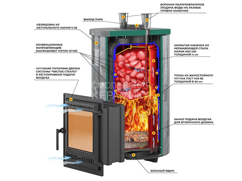 Материал закрытой каменки: Нержавеющая сталь 4 мм