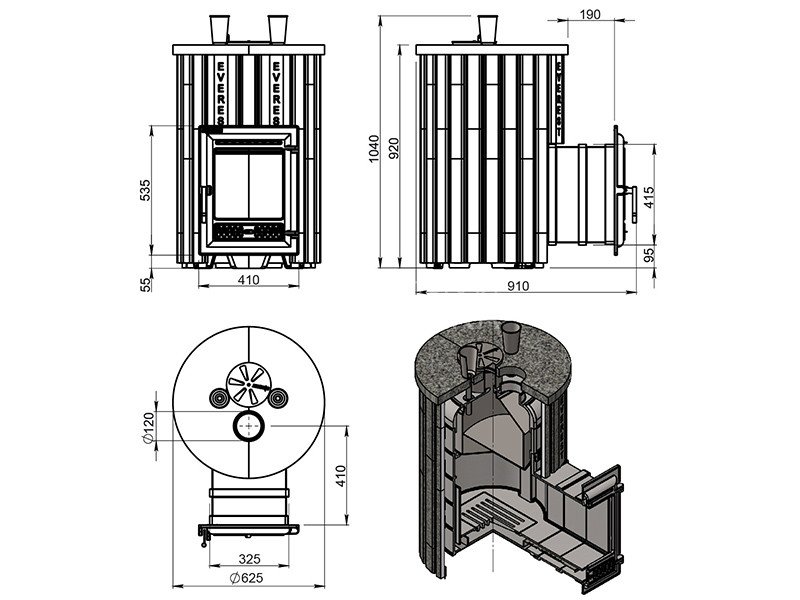 Диаметр дымохода: 120 мм