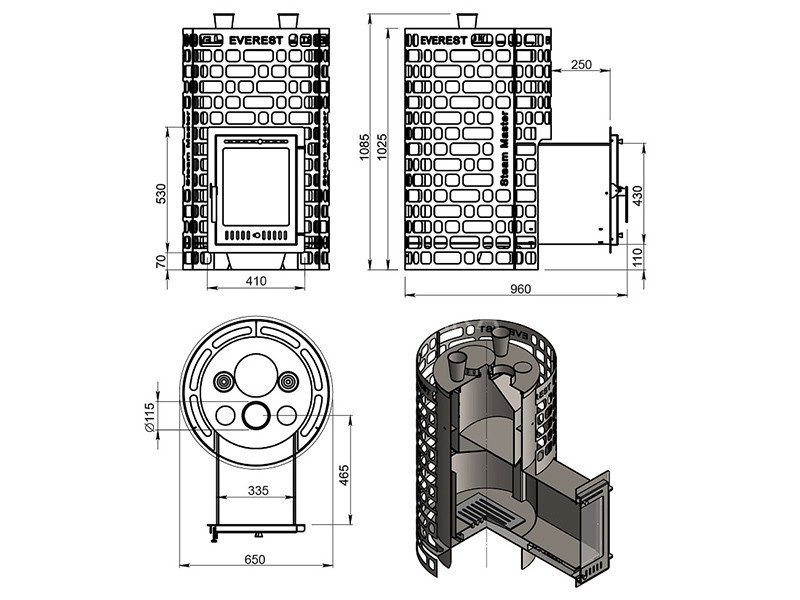 Печь для бани Эверест "Steam Master" 38 (320М) изготовлена из особо прочной котловой стали 09Г2С. Печь предназначена для установки в частные и коммерческие бани с объёмами парных помещений до 38 кубических метров.