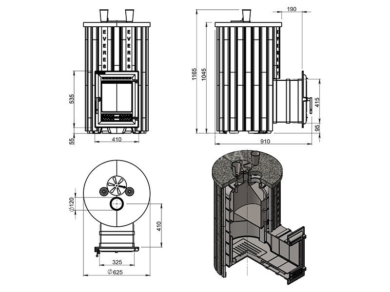 Диаметр дымохода: 120 мм