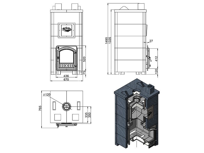 Материал закрытой каменки: Жаростойкий чугун 10 мм