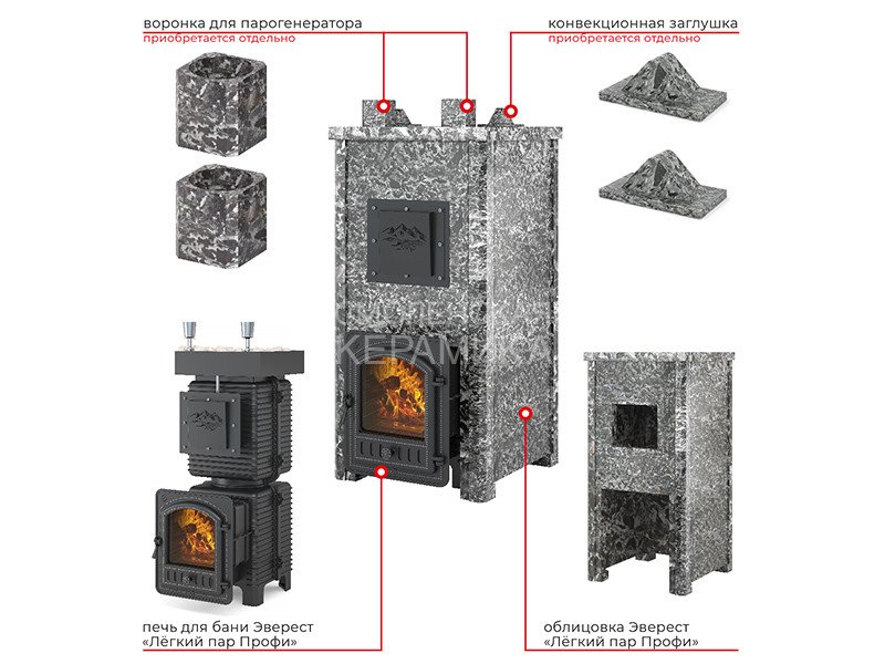Чугунная банная печь быстро прогреет вашу парную. С помощью комплекта легко сделать открытую и закрытую каменки, заложив камни и установив парогенераторы. Получение пара возможно и с нагретой облицовки. Большая масса камня и минимальная конвекция улучшают микроклимат в бане.