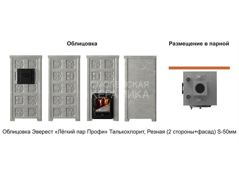 Комплект Лёгкий Пар Профи с облицовкой из массива натурального талькохлорита – это возможность получить теплоёмкую банную печь для своей парной в уникальном дизайне. Данный тип облицовки отличается наличием резного узора на поверхности камня, что делает массив более лёгким на вид, способствует увеличению площади теплоотдачи.