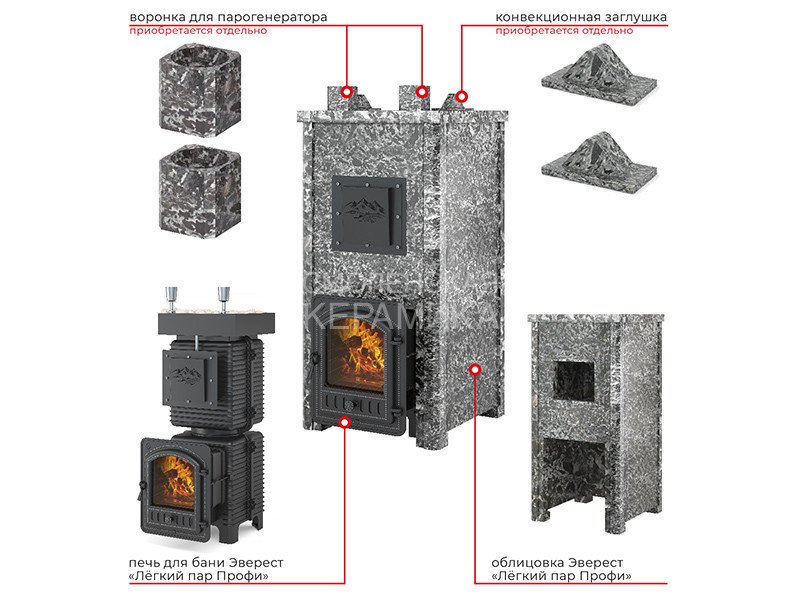 Поворотная чугунная банная печь EVEREST Лёгкий Пар ПРОФИ предназначена для обогрева парных помещений объёмом до 44 м3 и получения пара при эксплуатации в частных и коммерческих банях.