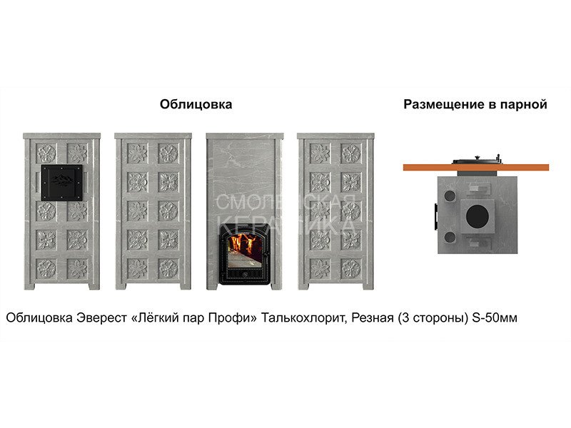Комплект Лёгкий Пар Профи с облицовкой из массива натурального талькохлорита – это возможность получить теплоёмкую банную печь для своей парной в уникальном дизайне. Данный тип облицовки отличается наличием резного узора на поверхности камня, что делает массив более лёгким на вид, способствует увеличению площади теплоотдачи.