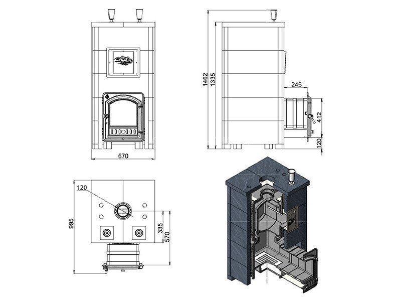 Материал закрытой каменки: Жаростойкий чугун 10 мм