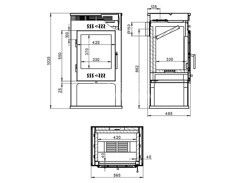 Диаметр дымохода: 150 мм