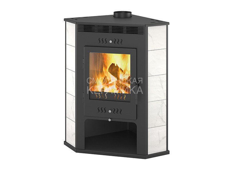 Печь-камин АСТОН 11 кВт угловой изготовлена из особо прочной котловой стали марки 09Г2С. Наиболее термонагруженные участки выполнены из нержавеющей стали марки AISI 430. Печь работает на дровах и рассчитана на угловое размещение. Номинальная мощность печи – 11 кВт. Печь рассчитана на отопление помещений объёмом до 180 м³.