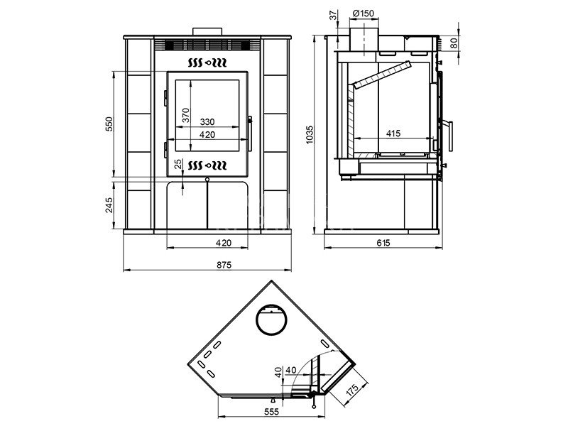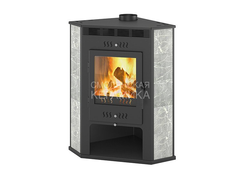 Печь-камин АСТОН 11 кВт угловой изготовлена из особо прочной котловой стали марки 09Г2С. Наиболее термонагруженные участки выполнены из нержавеющей стали марки AISI 430. Печь работает на дровах и рассчитана на угловое размещение. Номинальная мощность печи – 11 кВт. Печь рассчитана на отопление помещений объёмом до 180 м³.