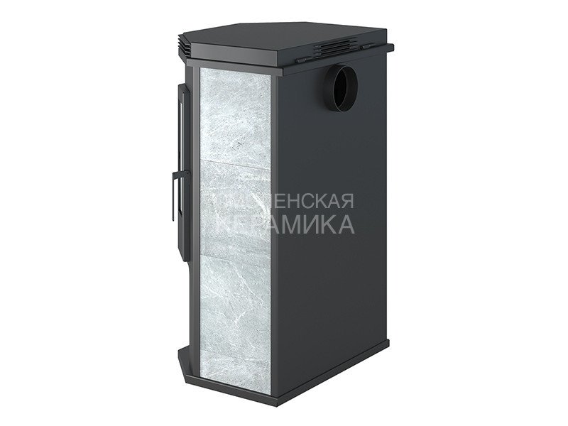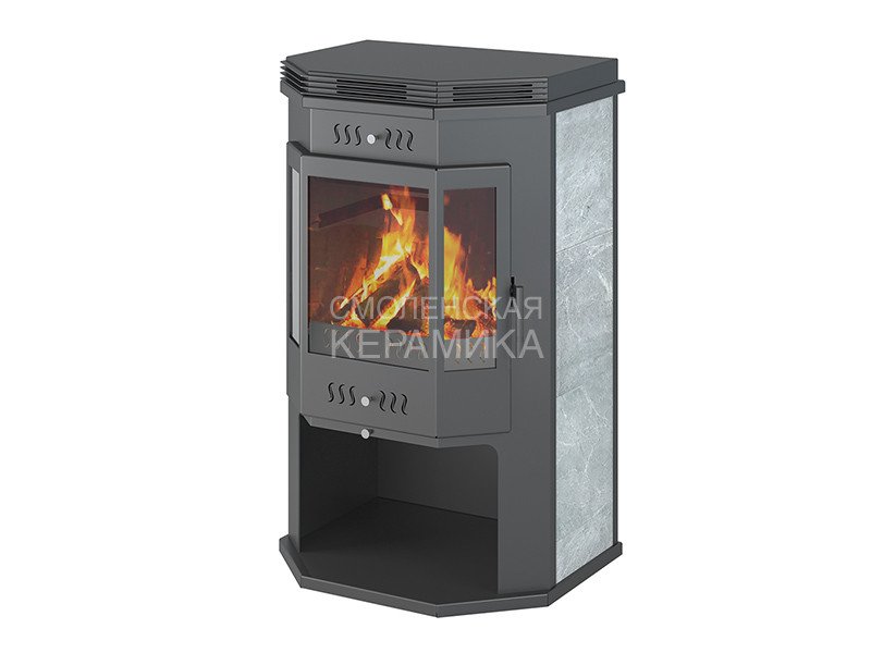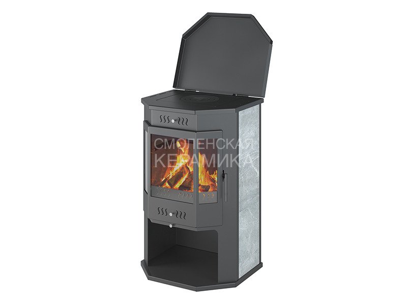Печь-камин ASTON 12 кВт (200 м3) Призматик с плитой (Талькохлорит) изготовлена из особо прочной котловой стали марки 09Г2С. Наиболее термонагруженные участки выполнены из нержавеющей стали марки AISI 430. Печь работает на дровах и рассчитана на пристенное размещение. Номинальная мощность печи – 12 кВт, что позволяет отапливать помещение объёмом до 200 м³.
