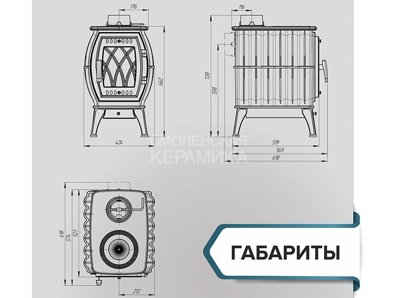 Размер печи (ВхДхШ) 728х569х424 мм