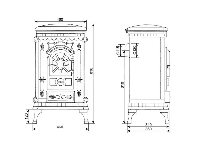 В то время, когда вы не пользуетесь конфоркой, верхняя панель печи прикрывается литой узорной крышкой из чугуна.