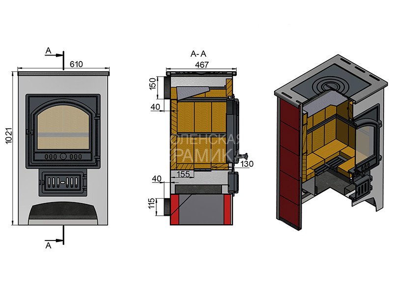 Топка футерована легкозаменяемым высококачественным шамотом.
