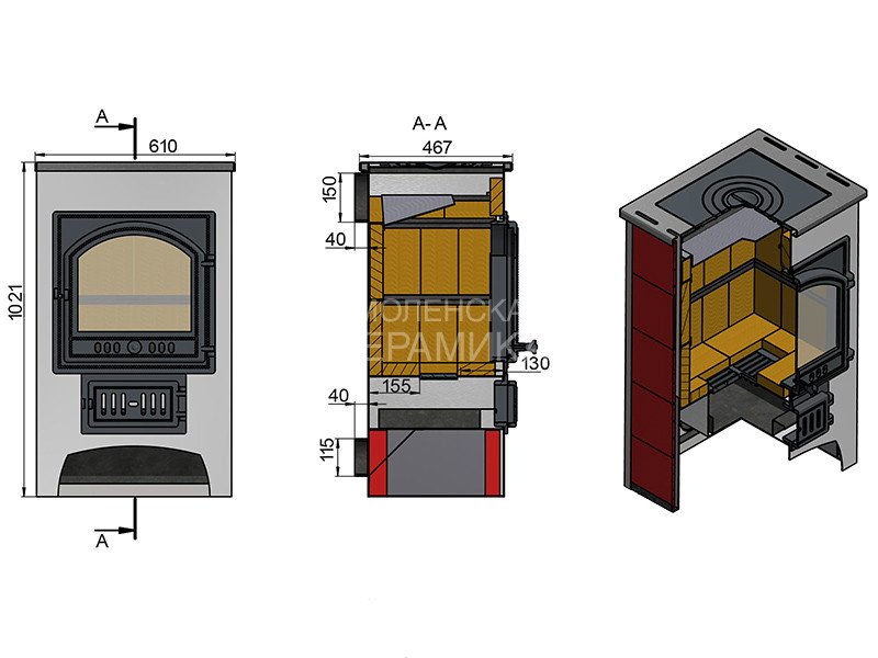 Диаметр дымохода: 150 мм