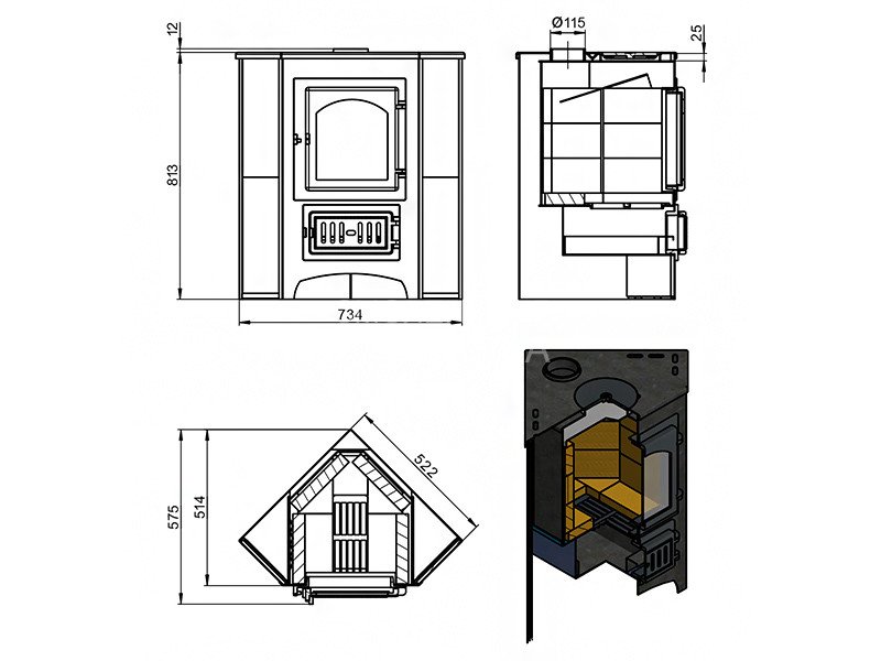 Диаметр дымохода: 115 мм