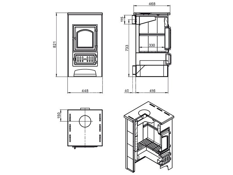Печь-камин изготовлена из особо прочной котловой стали марки 09Г2С.