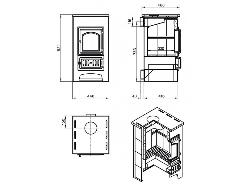 Диаметр дымохода: 115 мм