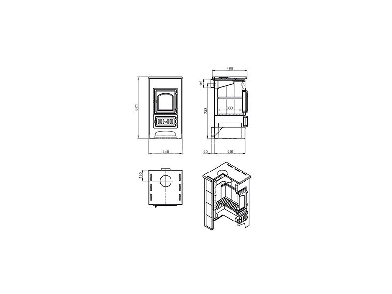 Чугунная поддувальная дверь с системой регулировки режимов горения.