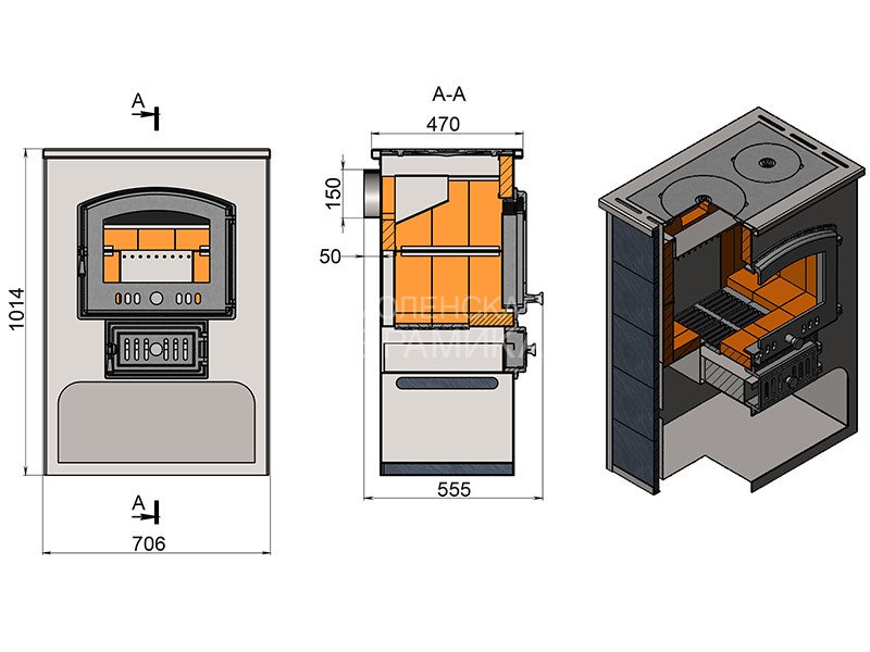 Диаметр дымохода: 150 мм