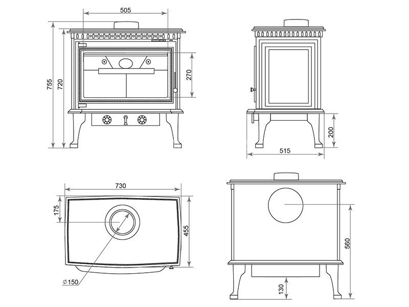 Патрубок дымохода – универсальный, со сменным положением. Он может быть установлен сверху или сзади в зависимости от размещения печи в помещении.