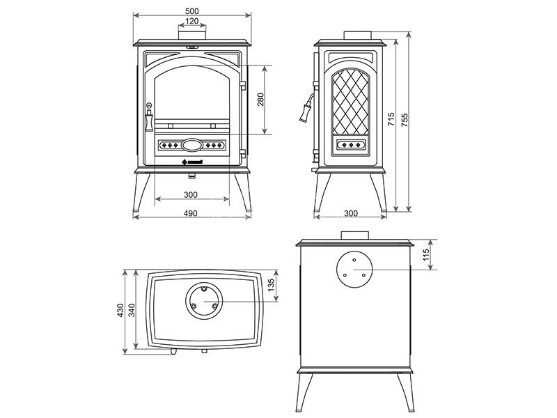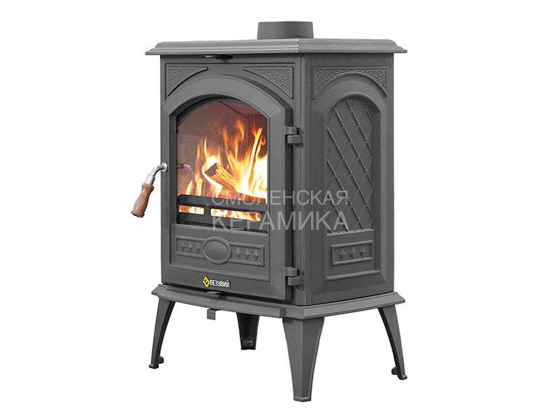 Чугунная дверца с фирменным логотипом и стеклом диагональю 370 мм оснащена ручкой с регулировкой силы прижатия.