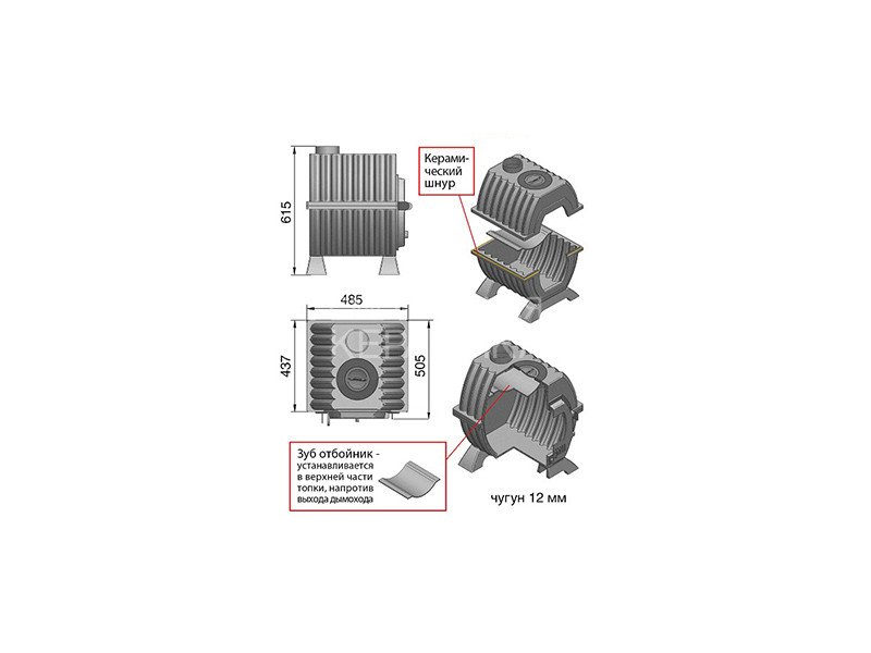 Топка состоит из двух чугунных элементов толщиной не менее 12 мм.