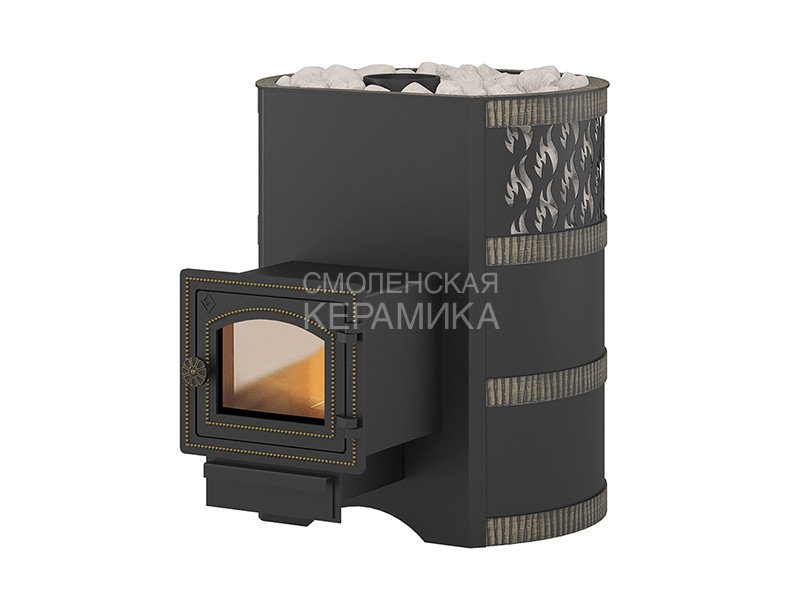 Топка печи изготовлена из особо прочной котловой стали марки 09Г2С. Толщина верхней и задней части 6 мм, толщина боковых стенок 4 мм. Топка имеет скошенные углы в нижней части боковых стенок топки. Такая конструкция облегчает уход за топкой, предотвращает высокую тепловую нагрузку на боковые стенки печи и обеспечивает дополнительную жёсткость стенок. Вместе с тем, данная конструкция стенок предполагает направление дров ближе к колосниковой решётке, что обеспечивает полное прогорание топлива.