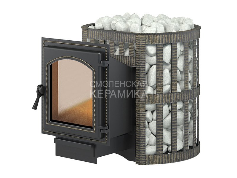 Банная чугунная печь Легенда Ковка 12(220) укомплектована чугунной герметичной дверцей Везувий 220 с жаропрочным стеклом «SCHOTT ROBAX». Конвекционно-вентилируемый кожух "Ковка" изготовлен из металлической текстурированной полосы покрашенной термостойкой краской и покрытая патиной «Бронза».