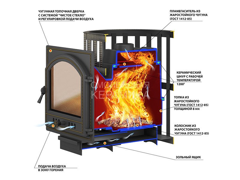 Материал топки: Жаростойкий чугун (ГОСТ 1412-85)