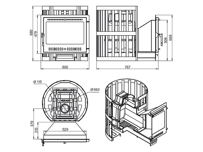 Диаметр дымохода: 115 мм