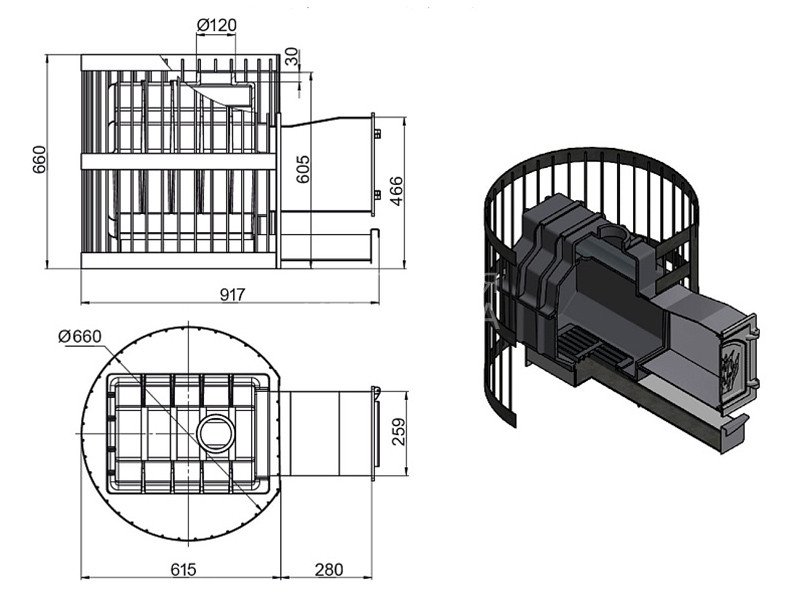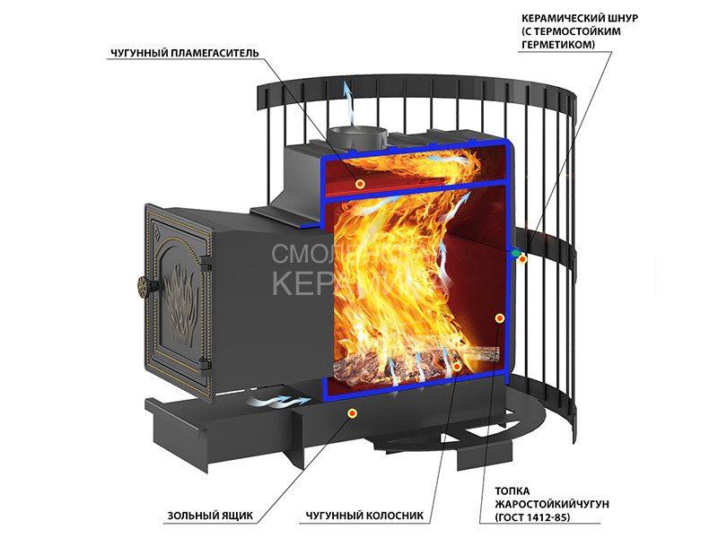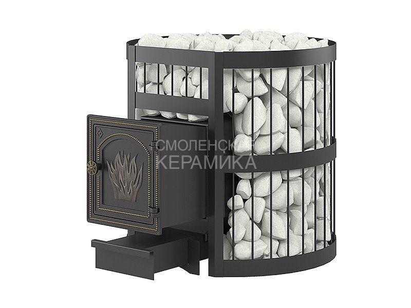 Банная чугунная печь Легенда Ретро 24 Стандарт (ДТ-4) укомплектована чугунной не герметичной дверцей Везувий ДТ-4. Конвекционно-вентилируемый кожух "Стандарт" изготовлен из металлического прутка диаметром 6мм покрашенной черной термостойкой краской.