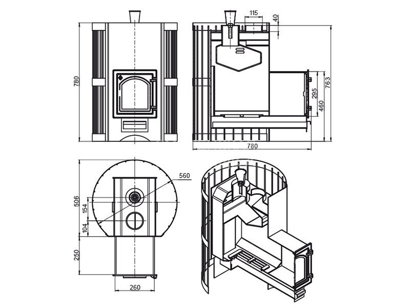 За счёт правильного расположения каменки, температура разогрева камней может достигать 500-550 градусов, что поз
