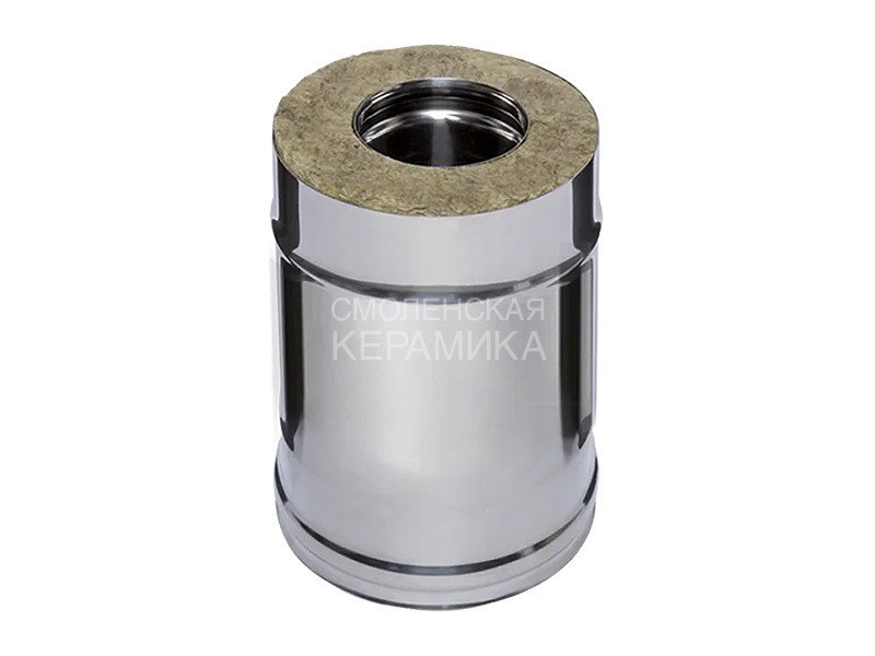Утепленный элемент предназначен для отвода дымовых газов на неотапливаемых прямолинейных участках дымохода. Важно! За счет раструбов полезная длина элемента на 60 мм меньше, чем номинальная. Внутренний контур изготовлен из нержавеющей стали AISI430 толщиной 0,5 мм. Теплоизоляция - из базальтовой ваты, это позволяет свести к минимуму образование конденсата и будет способствовать быстрому прогреву дымоходного канала и выходу системы в рабочий режим. Холодная формовка раструбного соединения с идеальной геометрией и газоплотностью. Лазерная сварка встык обеспечивает тонкий и прочный шов, увеличивая в разы срок эксплуатации. Рабочая температура до 450°С.