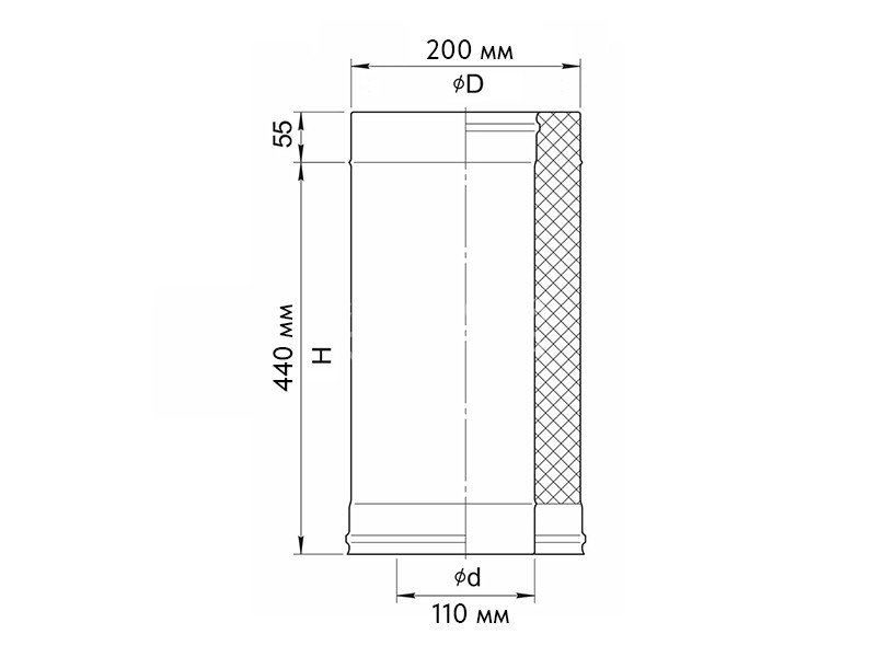 Сэндвич 0,5 м (AISI 430/0,5мм + нерж.) Ф110х200, Ferrum GS 30-50