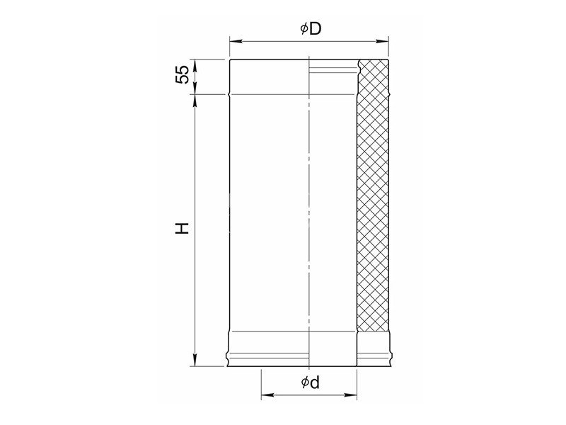 Утепленный элемент предназначен для отвода дымовых газов на неотапливаемых прямолинейных участках дымохода. Важно! За счет раструбов полезная длина элемента на 60 мм меньше, чем номинальная. Внутренний контур изготовлен из нержавеющей стали AISI 430 толщиной 0,8 мм. Теплоизоляция - из базальтовой ваты, это позволяет свести к минимуму образование конденсата и будет способствовать быстрому прогреву дымоходного канала и выходу системы в рабочий режим. Холодная формовка раструбного соединения с идеальной геометрией и газоплотностью. Лазерная сварка встык обеспечивает тонкий и прочный шов, увеличивая в разы срок эксплуатации. Рабочая температура до 600°С.