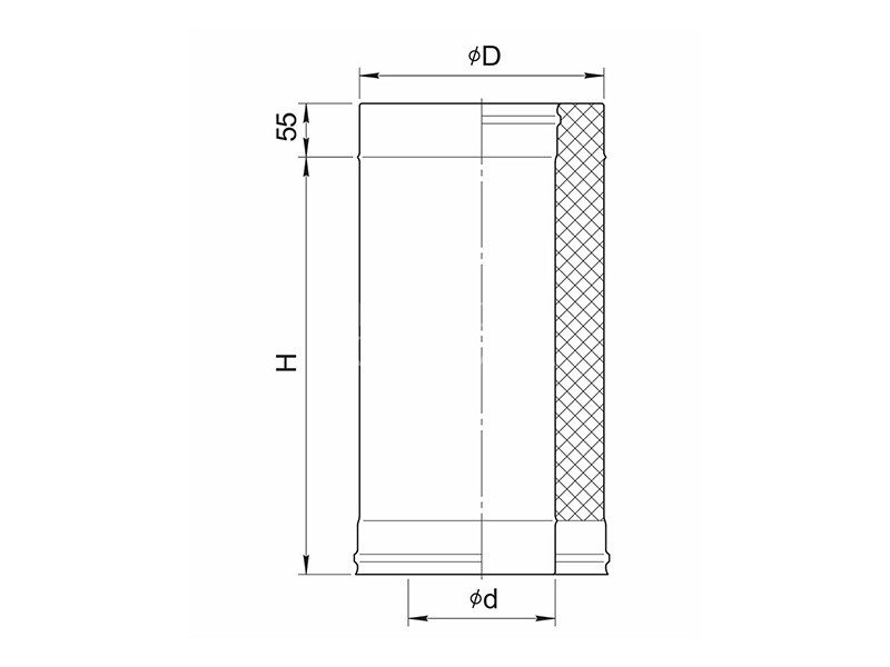 Утепленный элемент предназначен для отвода дымовых газов на неотапливаемых прямолинейных участках дымохода. Важно! За счет раструбов полезная длина элемента на 60 мм меньше, чем номинальная. Внутренний контур изготовлен из нержавеющей стали AISI 430 толщиной 0,8 мм. Теплоизоляция - из базальтовой ваты, это позволяет свести к минимуму образование конденсата и будет способствовать быстрому прогреву дымоходного канала и выходу системы в рабочий режим. Холодная формовка раструбного соединения с идеальной геометрией и газоплотностью. Лазерная сварка обеспечивает тонкий и прочный шов, увеличивая в разы срок эксплуатации. Рабочая температура до 600°С.