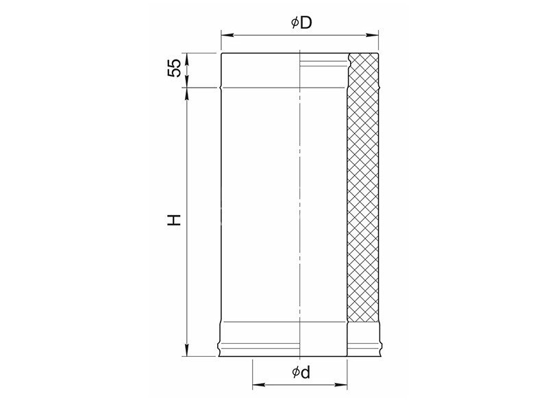 Утепленный элемент предназначен для отвода дымовых газов на неотапливаемых прямолинейных участках дымохода. Важно! За счет раструбов полезная длина элемента на 60 мм меньше, чем номинальная. Внутренний контур изготовлен из нержавеющей стали AISI 430 толщиной 0,8 мм. Теплоизоляция - из базальтовой ваты, это позволяет свести к минимуму образование конденсата и будет способствовать быстрому прогреву дымоходного канала и выходу системы в рабочий режим. Холодная формовка раструбного соединения с идеальной геометрией и газоплотностью. Лазерная сварка встык обеспечивает тонкий и прочный шов, увеличивая в разы срок эксплуатации. Рабочая температура до 600°С.
