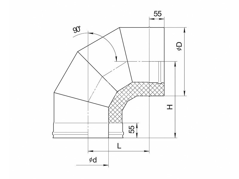 Утепленный элемент предназначен для изменения направления дымового канала и обхода препятствий во время монтажа.Внутренний контур изготовлен из нержавеющей стали AISI430 толщиной 0,5 мм. Теплоизоляция - из базальтовой ваты, это позволяет свести к минимуму образование конденсата и будет способствовать быстрому прогреву дымоходного канала и выходу системы в рабочий режим. Холодная формовка раструбного соединения с идеальной геометрией и газоплотностью. Лазерная сварка встык обеспечивает тонкий и прочный шов, увеличивая в разы срок эксплуатации. Рабочая температура до 450°С.