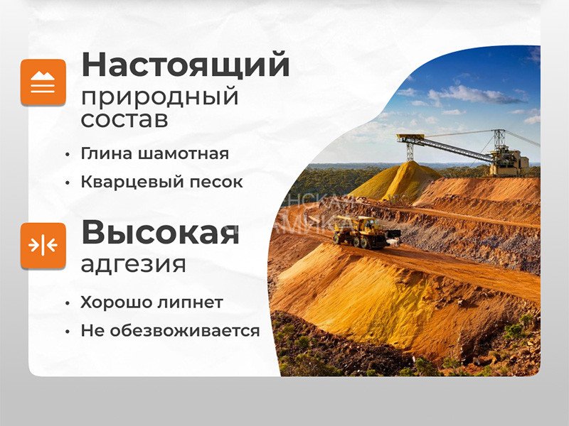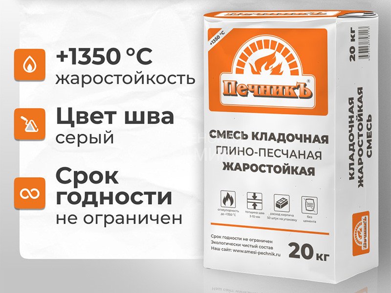 Жаростойкий, экологически чистый, высокопластичный кладочный состав. Жаростойкость смеси составляет +1350°С.