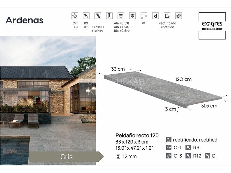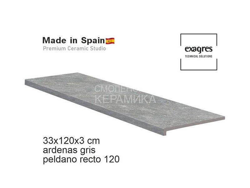 Ступень прямая противоскользящая Peldano recto 120, C3 Exagres Ardenas Gris