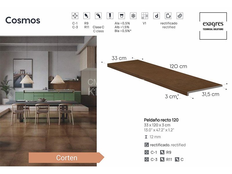 Ступень прямая противоскользящая Peldano recto 120, C3 Exagres Cosmos Corten